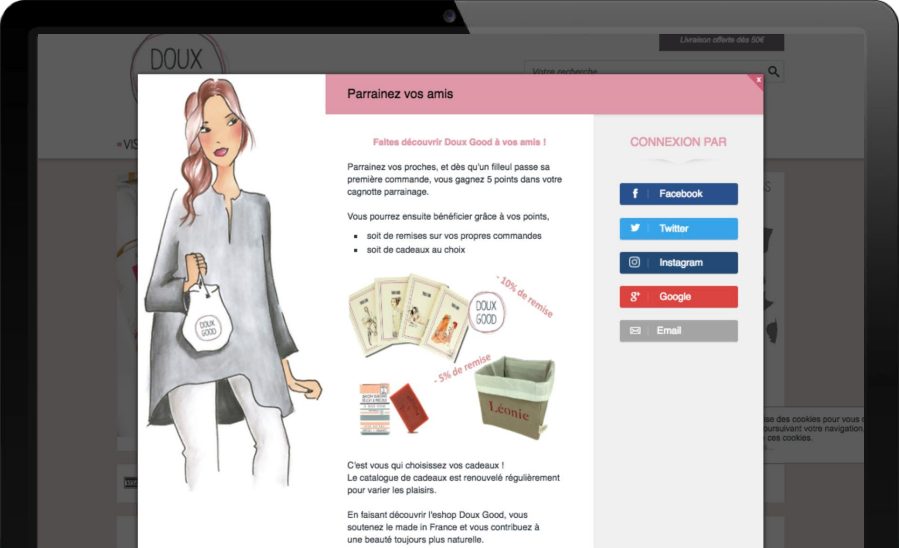 Une belle manière pour Doux Good d'engager ses clients satisfaits et de les impliquer dans leur processus d'acquisition !
